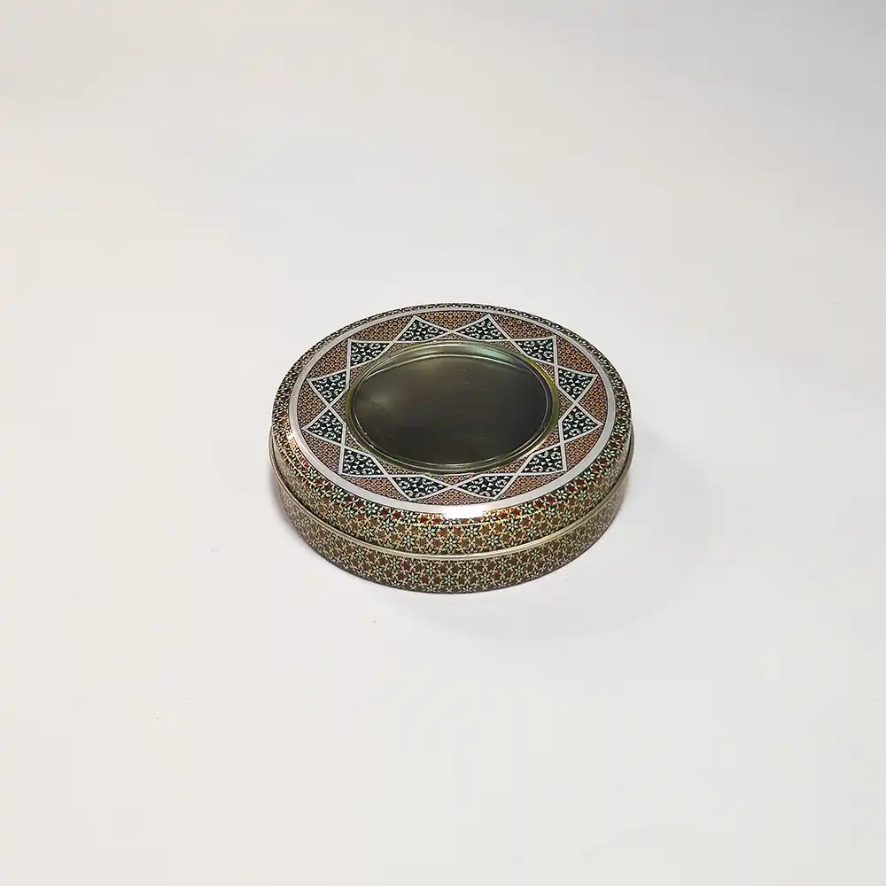 قوطی فلزی زعفران خاتم 7 گرمی (گنجایش 15 گرم سرگل)
